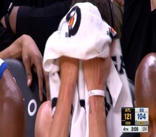 在第四節(jié)還剩下2分09秒的時(shí)候,庫里被換下場之后,看到場上球隊(duì)落后的情況,他坐在板凳上直接拿著毛巾捂臉,看到球隊(duì)過大的比分差距,也是沒眼看場上的情形。在第三節(jié)末段,老鷹隊(duì)的肯納德爆發(fā)連續(xù)轟進(jìn)多記三分球,末節(jié)分差已經(jīng)突破二十分,勇士再追分也無濟(jì)于事,最終老鷹輕取勇士迎來三連勝。