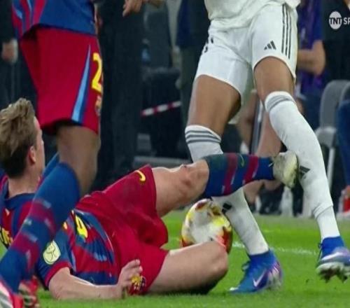 西班牙超級(jí)杯決賽驚險(xiǎn)一幕:德容補(bǔ)時(shí)飛鏟姆巴佩染紅